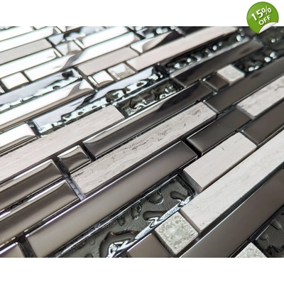 Pre-Order Long Chrome Rectangle Silver Grey Metal Glass Mosaic Wall Tile