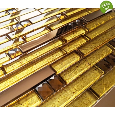Luxury Gold Iridescent Glass Foil & Metal Square Mosaic Wall Tile